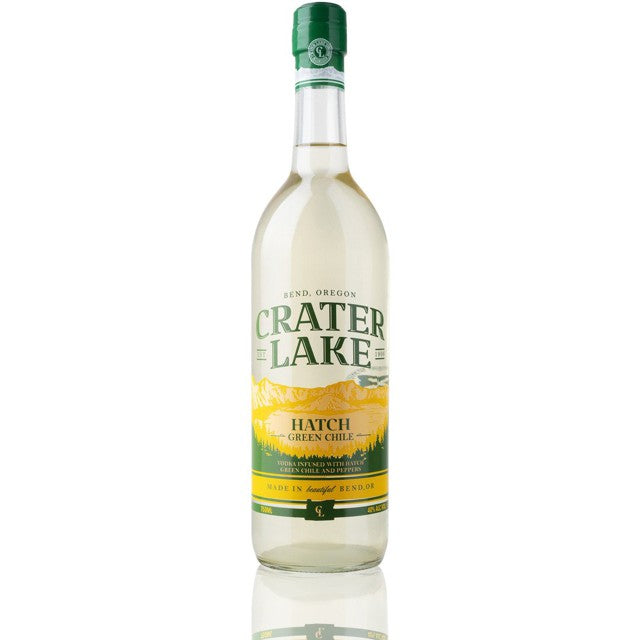 Crater Lake Hatch Green Chile vodka packs a dry heat reminiscent of the rugged Southwest. Notes of flavorful fire-roasted Hatch green chiles blend with other peppers to create an undeniably spicy and delicious vodka.