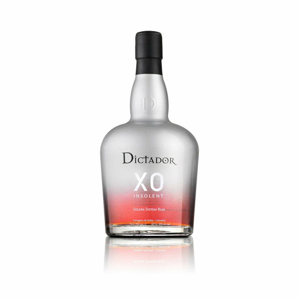 Dictador XO Insolent Solera System Rum is made from the fermentation of unique virgin sugar cane honey, then distilled in a modern stainless steel alembic. It is then aged in pre-used quality oak barrels from Jerez and Port that now and again reburn to caramelize the